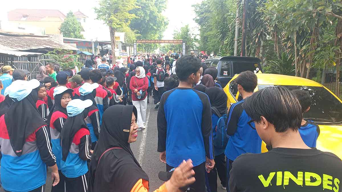 MOJOKERTO, BANGSAONLINE.com - Puluhan ribu warga Mojokerto dan sekitarnya memadati halaman GOR Gajahmada Mojosari pada Minggu (26/10/2025) untuk mengikuti kegiatan bertajuk 'Mlaku Bareng Gus Bupati' atau jalan sehat bersama Bupati Mojokerto, Muhammad Al Barra atau yang akrab disapa Gus Barra.