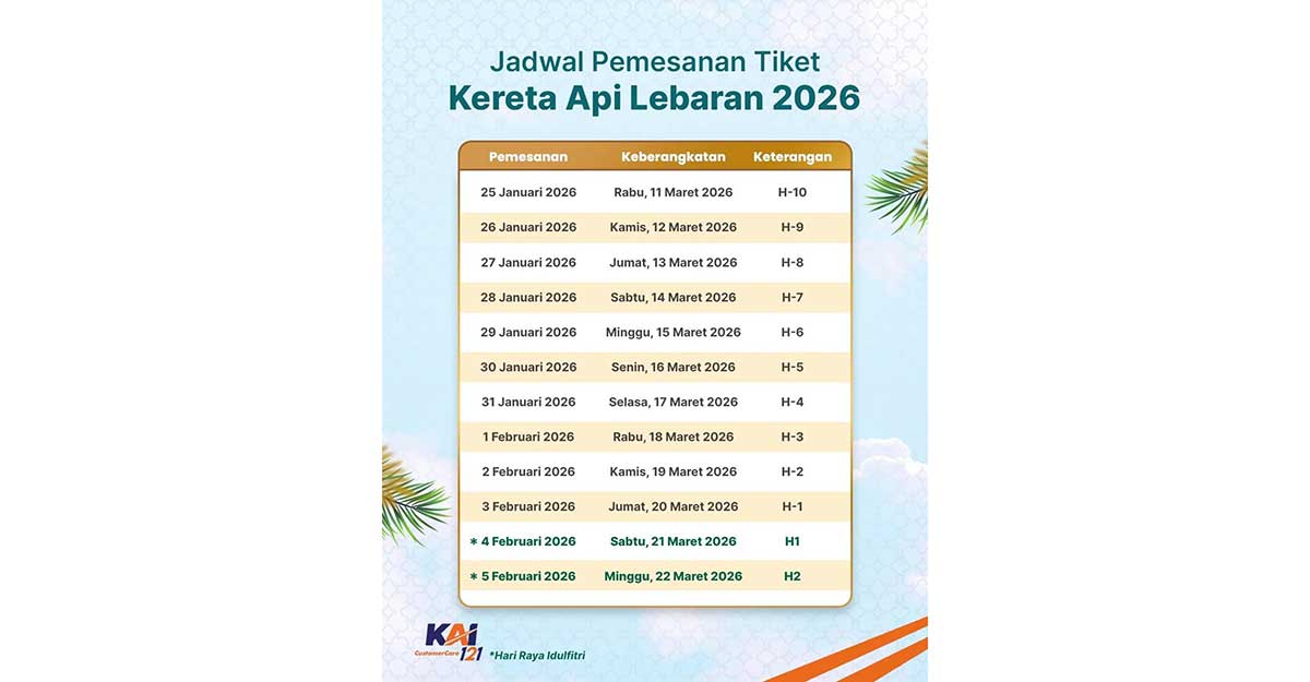 “Dengan sistem H-45, pelanggan memiliki waktu yang cukup untuk menyusun rencana perjalanan. Ini juga membantu KAI dalam mendistribusikan arus penumpang agar lebih merata selama masa Angkutan Lebaran,” ujarnya, Sabtu (24/1/2026).
