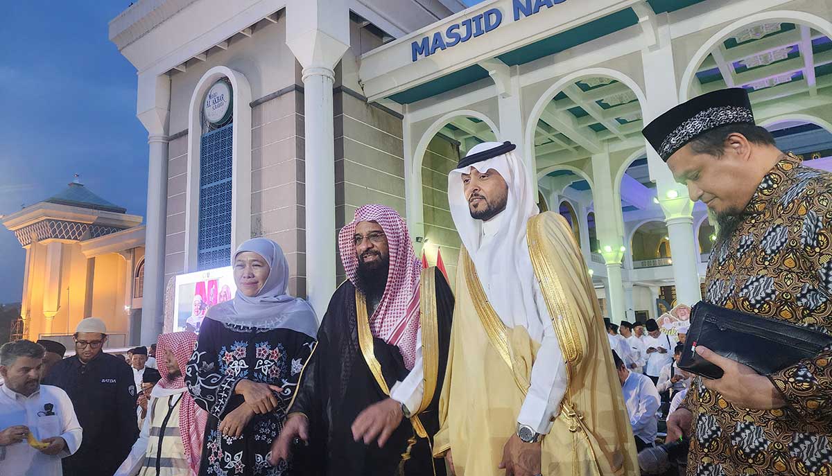 Gubernur Khofifah bersama Atase Agama Kedutaan Besar Arab Saudi untuk Indonesia, Syeikh Ahmad bin Izza Al Hazimy, menggelar buka puasa bersama ribuan masyarakat di Masjid Nasional Al-Akbar, Surabaya.