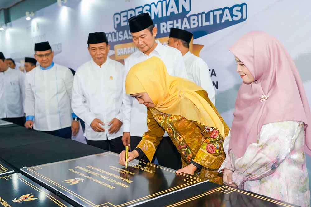 Khofifah menegaskan, prasasti tersebut bukan sekadar penanda pembangunan fisik, tetapi juga simbol komitmen bersama untuk menjaga dan merawat fasilitas pendidikan yang telah dibangun.