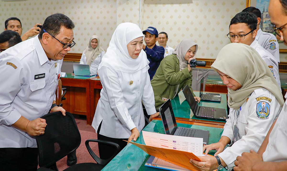 SURABAYA, BANGSAONLINE.com - Gubernur Khofifah meninjau Posko Tunjangan Hari Raya (THR) Keagamaan di Dinas Tenaga Kerja dan Transmigrasi (Disnakertrans) Jawa Timur, Rabu (11/3/2026). Peninjauan dilakukan untuk memastikan layanan konsultasi dan pengaduan pekerja terkait pembayaran THR berjalan optimal menjelang Idulfitri.