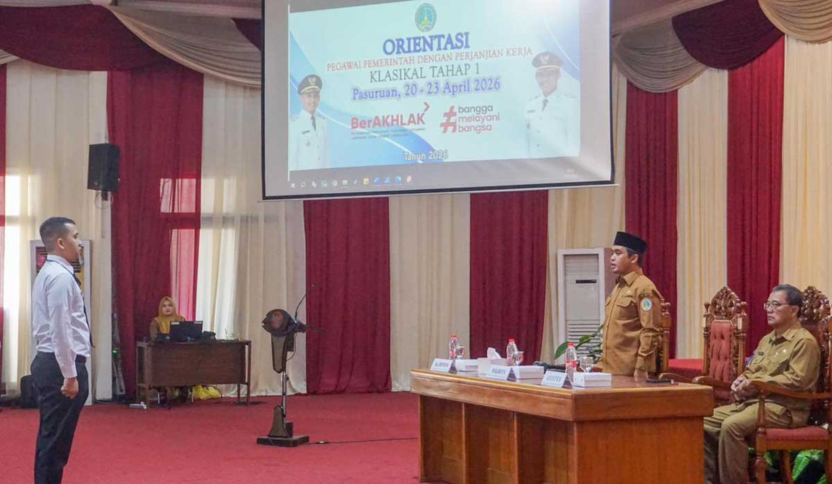 KOTA PASURUAN, BANGSAONLINE.com - Pemkot Pasuruan menggelar orientasi PPPK (Pegawai Pemerintah dengan Perjanjian Kerja) Klasikal Tahap I di Gedung Gradhika, Senin (20/4/2026). Wali Kota Pasuruan, Adi Wibowo, menegaskan nilai ASN BerAKHLAK harus diwujudkan dalam kerja nyata, bukan sekadar slogan.