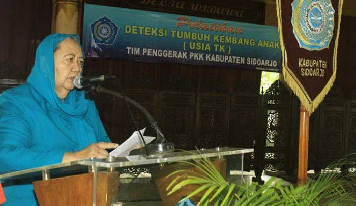 SIDOARJO, BANGSAONLINE.com - Tim Penggerak PKK Kabupaten Sidoarjo memberikan pelatihan deteksi tumbuh kembang anak kepada anggotanya di Pendopo Delta Wibawa Sidoarjo, Rabu (23/3).
