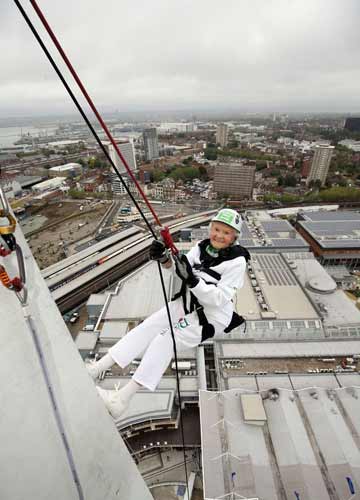 Doris Long (85 tahun) dari Hayling Island, Hants tahun 2015 dia memecahkan rekor dunianya sendiri sebagai abseiler tertua saat ia turun 328ft dari papan Spinnaker Portsmouth yang berada di Portsmouth