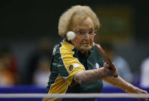 Juara tenis meja Australia Dorothy De Low (97) memainkan olahraga sampai dia meninggal dunia di 103 (Foto: Getty Images AsiaPac). foto: mirror.co.uk