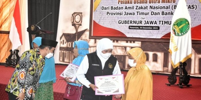 Gubernur Bersama Baznas Jatim Serahkan Bantuan dan Pinjaman Modal Pelaku Usaha Mikro Kota Pasuruan Jumat, 31 Desember 2021 13:21 WIB