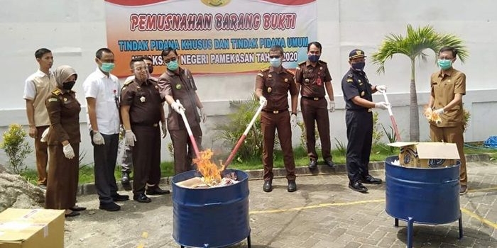 Kejari Pamekasan Musnahkan Ribuan BB Pidsus dan Pidum Tahun 2020, Ada Sajam, Sabu, Rokok Ilegal Selasa, 01 Desember 2020 19:55 WIB