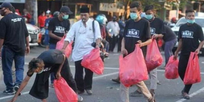 Relawan "Kita Rilis" Giri Sancoko-Lisdyarita Bersih-Bersih Sampah di KPU Sabtu, 05 September 2020 19:54 WIB