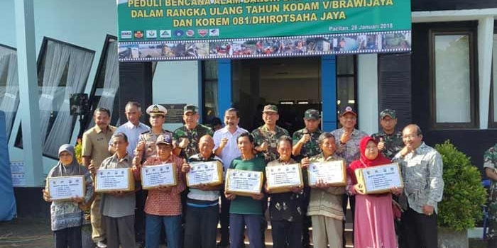 Danrem 0801/DSJ Serahkan Ribuan Paket Sembako Bagi Warga Terdampak Bencana di Pacitan Minggu, 28 Januari 2018 13:21 WIB