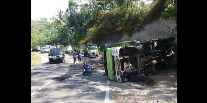 Tak Kuat Menanjak, Truk Fuso Pengangkut Aspal Terguling di JLS Pacitan Rabu, 23 Agustus 2017 12:20 WIB