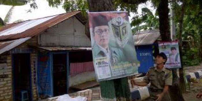 Satpol PP Sumenep Lorot Spanduk Caleg yang Melanggar Perda