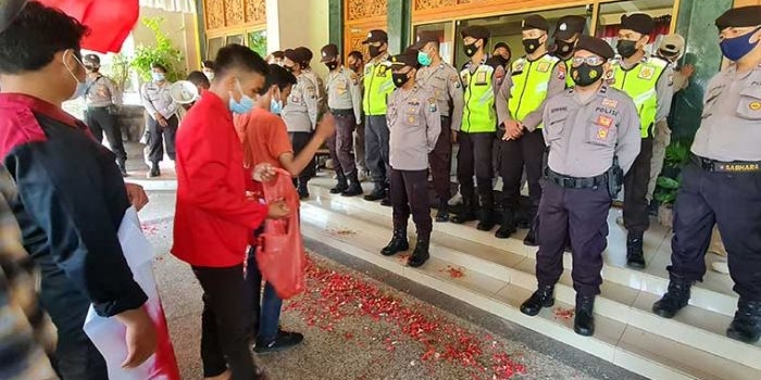 Tagih Janji Politik Bupati Ra Latif, GMNI Tabur Bunga di Gedung Pemkab Bangkalan Jumat, 09 April 2021 14:40 WIB