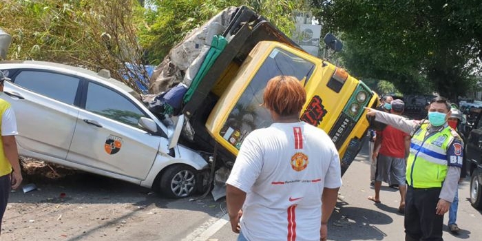 Kecelakaan di Medaeng Sidoarjo, Truk Tabrak Tiga Mobil Hingga Terguling Kamis, 30 September 2021 20:19 WIB
