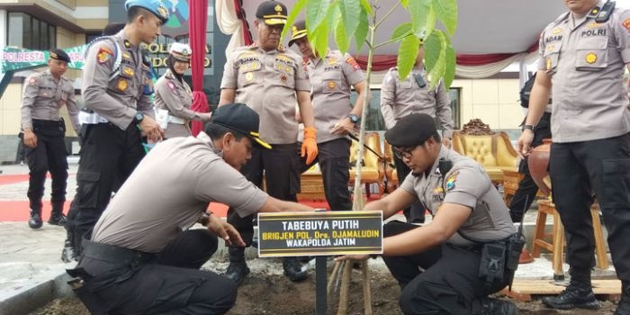 Wakapolda Jatim Lakukan Penanaman Pohon di Mako Baru Polresta Sidoarjo Jumat, 10 Januari 2020 15:35 WIB
