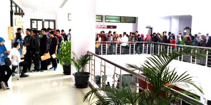 Dispendukcapil Kota Malang Buka Lowongan Tenaga Bantu, Antrean Pelamar Kerja Capai Puluhan Meter Kamis, 12 Januari 2017 01:39 WIB