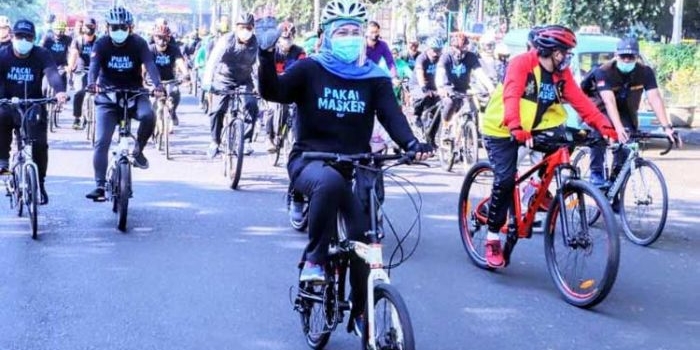Gowes di Malang, Gubernur Khofifah Bersama Pangdam & Kapolda Bagi Sembako dan Masker Sabtu, 19 September 2020 18:34 WIB