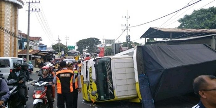 Mobil HRV Hantam Truk hingga Terguling di Kota Batu, Timpa Rumah dan Mobil Sabtu, 05 Januari 2019 18:33 WIB