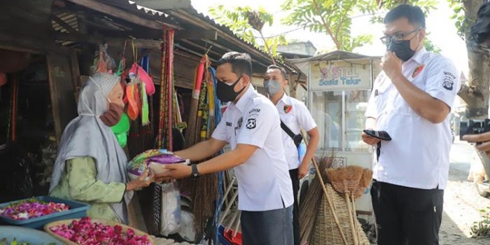 Polres Kediri Kota Kolaborasi dengan HMI Distribusikan Bansos ke PKL dan Abang Becak Kamis, 05 Agustus 2021 18:18 WIB