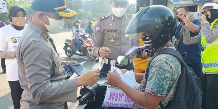 Cegah Penyebaran Covid-19, Polres Kediri Kota Bagi-bagi Masker kepada Pengguna Jalan Selasa, 14 April 2020 20:10 WIB