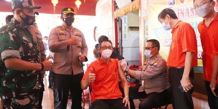 Jelang Imlek 2573, Polres Mojokerto Gelar Vaksinasi Covid-19 di Kelenteng Hiap Thian Kiong Selasa, 01 Februari 2022 01:13 WIB