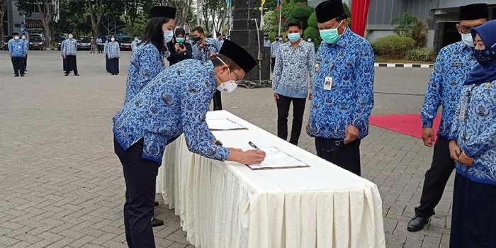 Telat Datang, 5 PNS Gresik Gagal Diambil Sumpah oleh Bupati Sambari Halim Senin, 19 Oktober 2020 11:29 WIB
