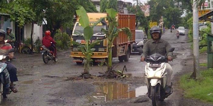 Kesal karena ‘Makan’ Korban, Warga Tanami Pohon Pisang Jalan Rusak Parah di Guyangan-Berbek Sabtu, 13 Februari 2016 00:59 WIB