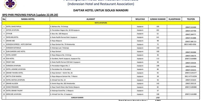 Pemerintah dan PHRI Siapkan 120 Hotel Isolasi Mandiri di Sembilan Provinsi Minggu, 11 Oktober 2020 00:43 WIB