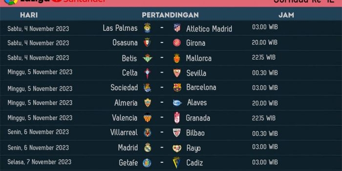 Jadwal Liga Spanyol 2023/2024 Jornada ke-12: Real Madrid Jumpa Rayo, Barcelona Tantang Sociedad Kamis, 02 November 2023 19:00 WIB