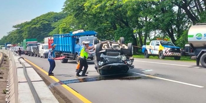 Tabrak Barrier Pemisah Jalan, Mobil Wuling Terguling di Tol Sidoarjo Jumat, 28 Oktober 2022 17:23 WIB