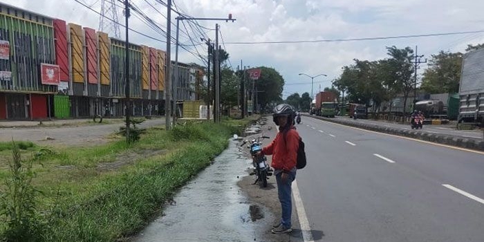Awas! Jalan Nasional di Depan Ruko Gempol 9 Pasuruan Licin