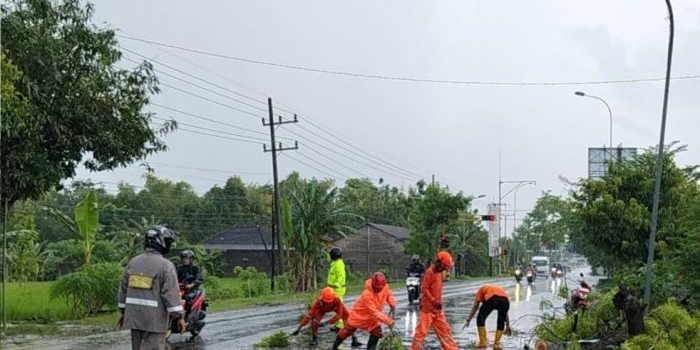 Pohon Mahoni Tumbang Akibat Hujan Angin Kencang Tutup Jalan Ngawi-Caruban Senin, 02 Februari 2026 17:59 WIB