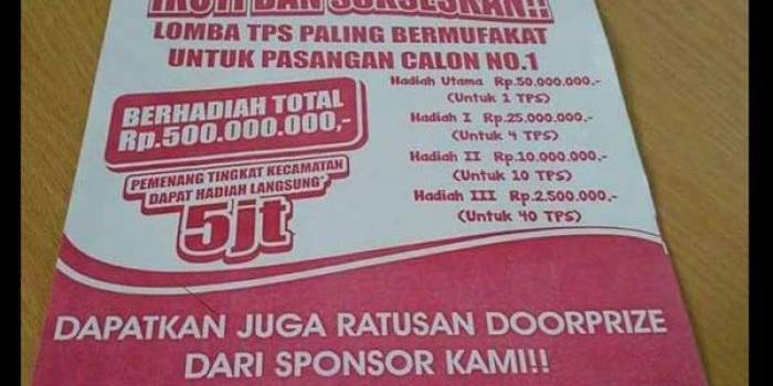 Pilkada Ngawi Digegerkan Brosur Lomba TPS Peraih Suara Terbanyak Paslon Incumbent Sabtu, 07 November 2015 18:33 WIB