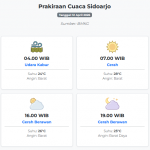 Prakiraan Cuaca Sidoarjo Hari ini Minggu, 12 April 2026: Suhu 24-31°C, Kecepatan Angin 19.4 m/s. Minggu, 12 April 2026 03:38 WIB
