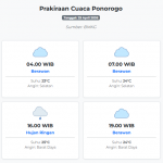Prakiraan Cuaca Ponorogo Hari ini Rabu, 29 April 2026: Suhu 23-28°C, Kecepatan Angin 14 m/s. Rabu, 29 April 2026 00:36 WIB