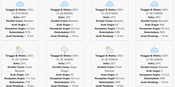 Cuaca Situbondo Hari ini Selasa, 28 Januari 2025: Diperkirakan Berawan dengan Suhu 23-29 °C Selasa, 28 Januari 2025 03:58 WIB