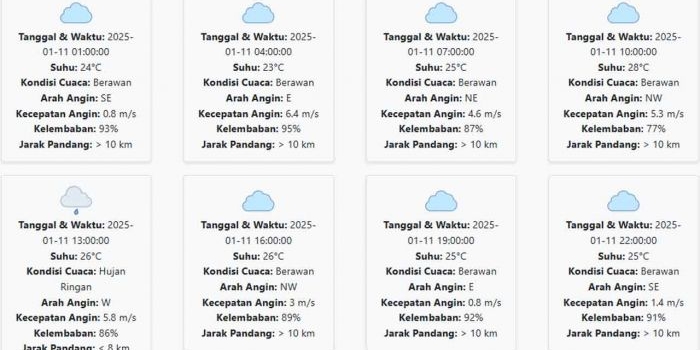 Prakiraan Cuaca Probolinggo Jumat, 10 Januari 2025: Suhu 23-30 °C, Kecepatan Angin 12.49 m/s Jumat, 10 Januari 2025 06:55 WIB