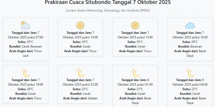 Cuaca Situbondo Besok Selasa, 7 Oktober 2025: Diperkirakan Cerah Berawan dengan Suhu 21-35°C Senin, 06 Oktober 2025 19:19 WIB
