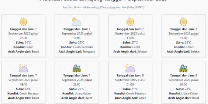 Cuaca Lumajang Hari ini Minggu, 7 September 2025: Diperkirakan Cerah dengan Suhu 21-27°C Minggu, 07 September 2025 01:11 WIB
