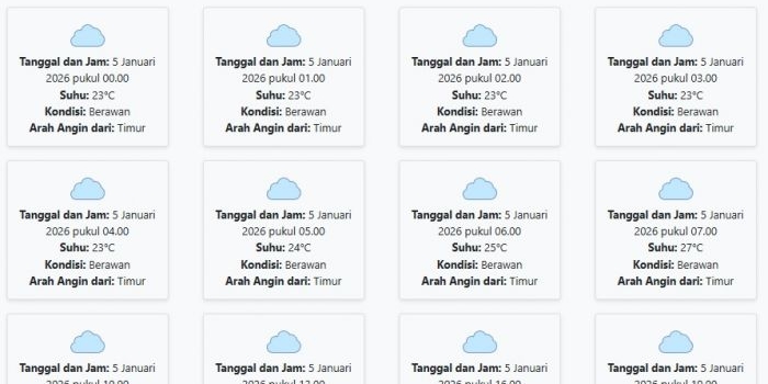 Cuaca Bojonegoro Hari ini Sabtu, 3 Januari 2026: Diperkirakan Berawan dengan Suhu 24-28°C Sabtu, 03 Januari 2026 02:55 WIB