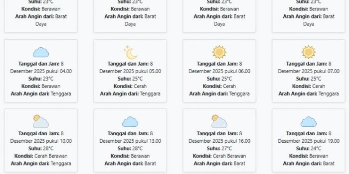 Cuaca Tuban Hari ini Kamis, 4 Desember 2025: Diperkirakan Berawan dengan Suhu 22-28°C Kamis, 04 Desember 2025 01:05 WIB