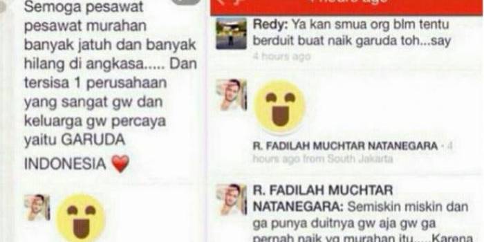 Status Path Ini Dikecam Netizen Karena Mendoakan Banyak Pesawat Jatuh Selasa, 30 Desember 2014 20:43 WIB