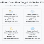 Cuaca Blitar Hari ini Senin, 20 Oktober 2025: Diperkirakan Cerah dengan Suhu 23-29°C Senin, 20 Oktober 2025 03:04 WIB