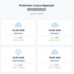 Prakiraan Cuaca Nganjuk Hari ini Minggu, 1 Februari 2026: Suhu 22-29°C, Kecepatan Angin 18.5 m/s. Minggu, 01 Februari 2026 03:33 WIB