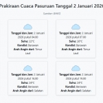 Cuaca Pasuruan Hari ini Jumat, 2 Januari 2026: Diperkirakan Berawan dengan Suhu 22-30°C Jumat, 02 Januari 2026 02:20 WIB
