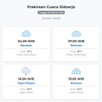 Prakiraan Cuaca Sidoarjo Hari ini Minggu, 28 Desember 2025: Suhu 23-32°C, Kecepatan Angin 27.8 m/s. Minggu, 28 Desember 2025 02:24 WIB