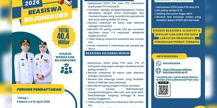 Pendaftaran Beasiswa Bojonegoro 2026 Segera Tutup 10 April, Cek Syarat dan Kategorinya! Selasa, 07 April 2026 02:49 WIB