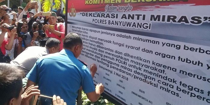 Deklarasi Anti Miras, Polres Banyuwangi Musnahkan Arak dan Tuak 11.776 Liter Kamis, 03 Mei 2018 00:42 WIB