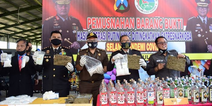 Barang Bukti Miras Serta Narkoba Hasil Tangkapan Selama Pandemi Diblender dan Dimusnahkan Rabu, 01 Juli 2020 14:16 WIB