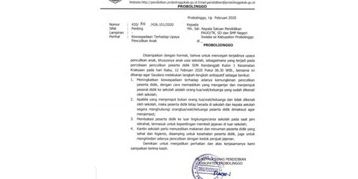 Marak Isu Penculikan Anak, Warga Probolinggo Diimbau Tingkatkan Kewaspadaan Kamis, 13 Februari 2020 22:11 WIB