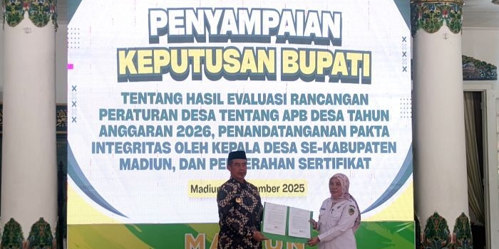 Bupati Madiun Sampaikan Keputusan Hasil Raperdes APBDes, Seluruh Desa Teken Pakta Integritas Rabu, 17 Desember 2025 19:06 WIB